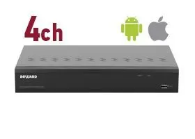 4 IP-канала, H.265/H.264, 50 Мбит/с, 3840x2160 (8 Мп), ONVIF, P2P сервис (мобильный клиент iOS/Android), 1x SATA HDD 3.5'', 1x VGA/HDMI, 1x 100 Мбит/с Ethernet, 4 тревожных входа / 1 тревожный выход