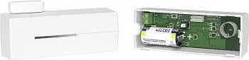 Извещатель охранный магнитоконтактный радиоканальный для работы в составе радиосистемы РИТМ, f-раб. 433 МГц , 1 ШС для внешнего СМК, элемент питания 1 x Li батарея 3 В (тип CR123A), t-раб. -30…+55°С, габ.размеры 29×101×38 мм.