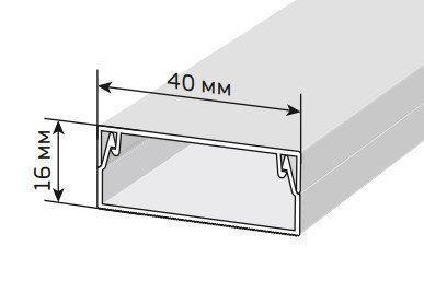 Кабель-канал с двойным замком самозатухающий ПВХ, 40х16х2000 мм, площадь полезного сечения 475 кв.мм, IP40, t-раб.-15...+60°C