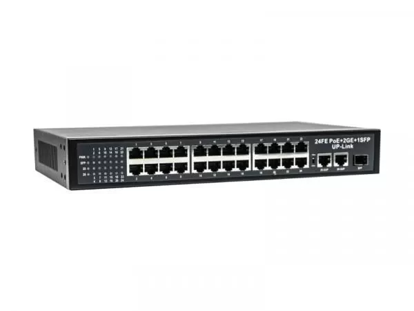 EL S-27/24PA_V.1 - неуправляемый PoE-коммутатор с внутренним блоком питания. Коммутатор оснащен портами 10/100 Мбит/с с поддержкой PoE (технология передачи питания по сетевому кабелю вместе с данными) к каждому из которых можно подключать сетевые устройства (IP-камеры, IP-телефоны, беспроводные точки доступа).