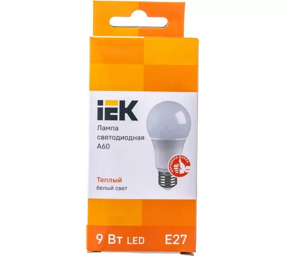 Технические характеристики IEK LED A60, 9вт, 230В, 3000К, E27 LLE-A60-9-230-30-E27
