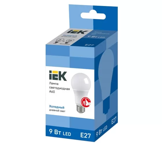 Технические характеристики IEK LED, A60, 9вт, 230В, 6500К, E27 LLE-A60-9-230-65-E27