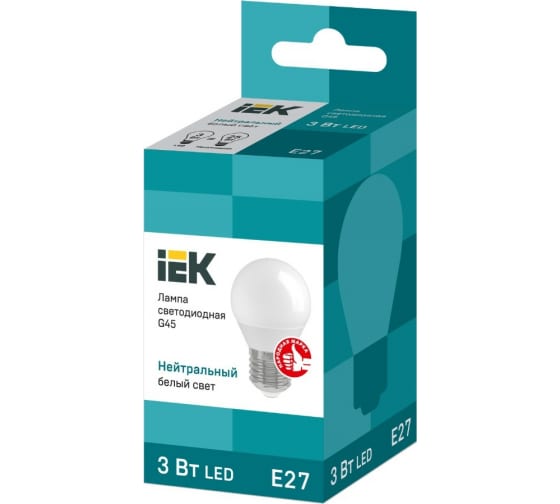 Технические характеристики IEK ECO G45 шар 3Вт 230В 4000К E27 LLE-G45-3-230-40-E27
