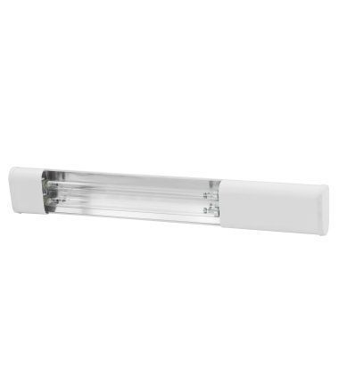 Настенно-потолочный, лампы: 2×15 Вт, производительность: 80 м³/ч (рекомендуемый объём помещения для обработки за час, м³, при бакэффективности 99,9%), металлический корпус с полимерным покрытием, на модульном профиле с зеркальным отражателем, ЭПРА (продлевающая срок службы ламп), работает в отсутствии людей.