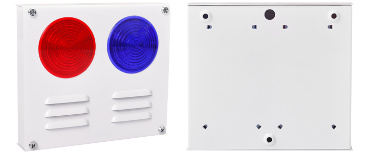 Комбинированный оповещатель серии Марс предназначен для раздельной подачи светозвукового сигнала от охранного прибора и прибора пожарной сигнализации. При подключении оповещателя рекомендуется использовать красный цвет для пожарного, синий цвет для охранного оповещения.