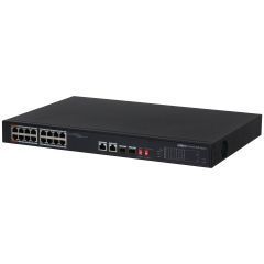 Неуправляемый, 16 портов 10/100/1000 Мбит/с (все с поддержкой High PoE) + 2 порта 1000 Мбит/с SFP, PoE бюджет 230 Вт, CCTV режим до 250м