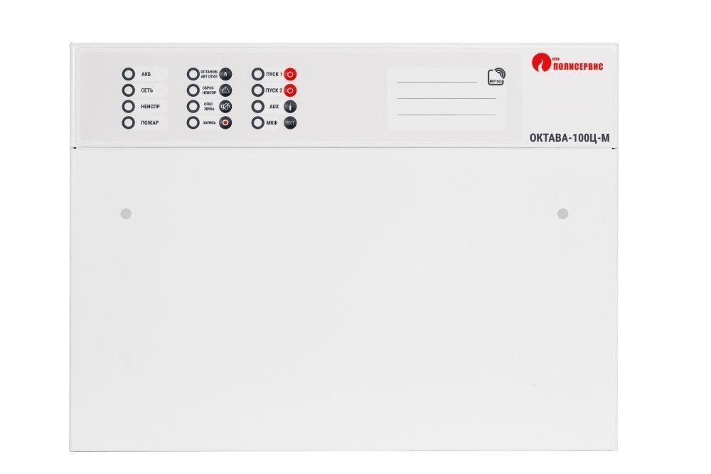 Прибор управления оповещением «Октава-100Ц-М» входящий в состав системы «Октава-М», предназначен для оповещения людей о пожаре в автоматическом и полуавтоматическом режиме, имеет выходы речевого и светового оповещения. Прибор управления оповещением «Октава-100Ц-М» соответствует требованиям ТР ЕАЭС 043/2017 и ГОСТ Р 53325-2012