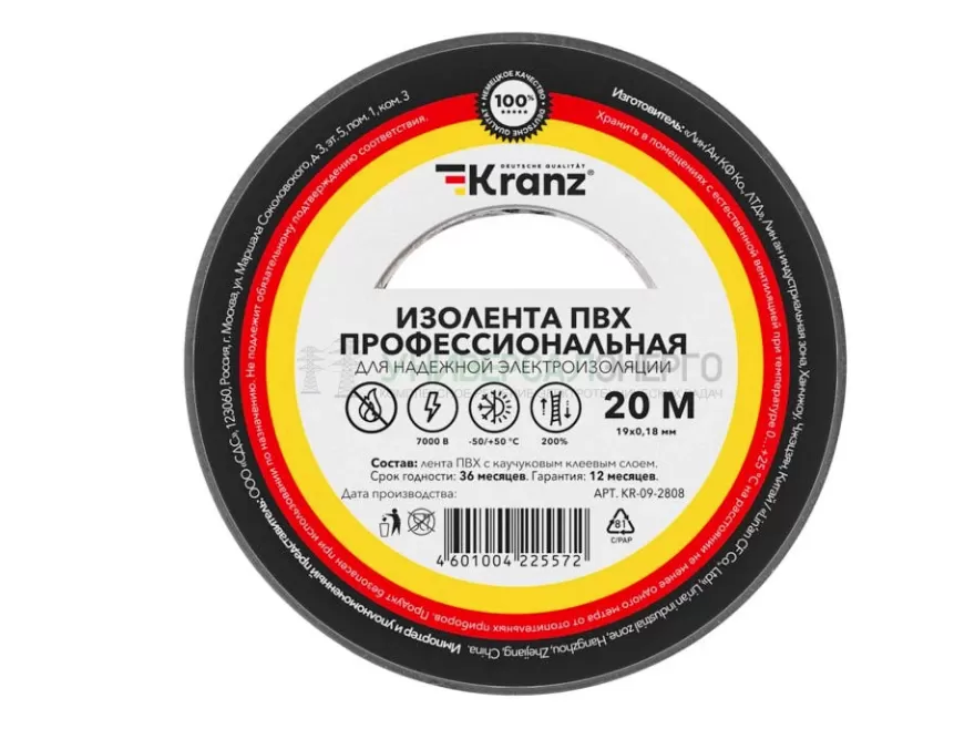 Профессиональная изоляционная лента KRANZ класса PREMIUM используется для электрической изоляции, цветной маркировки, соединения, защиты от внешних факторов и герметизации кабелей, проводов и шнуров. Находит широкое применение не только у профессионалов, но и в быту. Она имеет улучшенные технические характеристики (0,18 мм + суперлипкий клеевой слой), не подвержена климатическому старению, обеспечивает высокую механическую защиту, а так же устойчива к ультрафиолету, влажности, маслам и даже к растворам кислот и щелочей. Выполнена из высококачественной ПВХ-пленки с каучуковым клеевым слоем.