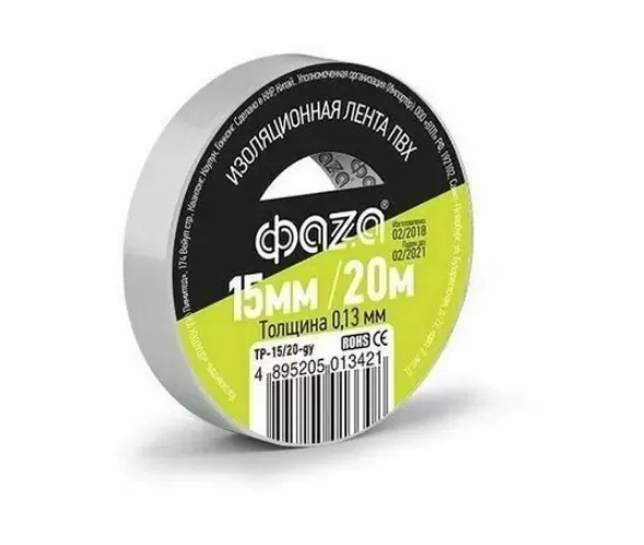 Изолента ПВХ серая 15 мм 20 м ФАZA