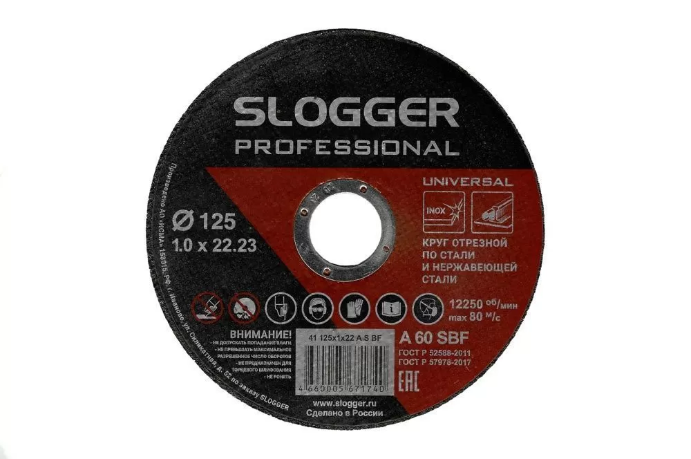 Круг отрезной SLOGGER 125х1х22 A R BF по стали и нерж.стали