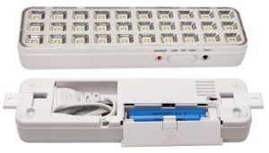 Светильник аварийного освещения светодиодный непостоянного действия, 187-242В, 30 сверх ярких светодиодов с длительным сроком службы, световой поток 80 Лм, 1 Li-ion аккумулятор 3.7 В, 1200 мАч, время свечения - до 3 часов, 202х55х30 мм, 0.17 кг, 0...+40°С
