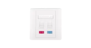 Настенная лицевая панель под 2 модуля типа Keystone, с подрамником, со шторкой, белая, уп-ка 10 шт.