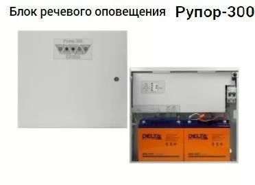 Блок речевого оповещения для работы в составе ИСО "ОРИОН"; 1 зона оповещения, P-вых.300 Вт, U-вых.100 В; 2 линейных входа, 2 входа запуска внешнего оповещения, до 255 сообщений оповещения, до 255 звуковых фрагментов, не более 400 сек (в формате MP3); RS-485, Ethernet; U-пит.185...255 В, P-потр.340 Вт, под 2 АКБ 12 В 17 Ач; IP30, t-раб.+1...+40°С, 440x415x95 мм.