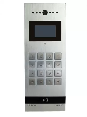 Вызывная панель цветного многоквартирного домофона со встроенным считывателем карт Em-marin. Прочный алюминиевый корпус. Анимированный TFT дисплей. Простое подключение с помощью разъемов RJ-45 (подключение по стандарту T568B). Управление замком. Подключение датчика положения двери. Выход Wiegand-26 для подключения к стороннему контроллеру СКУД.